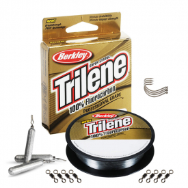 Fluorocarbon - Trilene 100% Fl.Carb Fluorocarbon-Schnüre sind unter Wasser völlig unsichtbar. Außerdem haben sie eine Abriebfestigkeit, die die üblichen Monolines übertrifft. Als Vorfachmaterial oder Hauptschnur beim Angeln auf schwer zu fangende und leicht zu verscheuchende Arten gehört Trilene 100% Fluorocarbon zum Besten, was Sie verwenden können. Die Knotenfestigkeit und Geschmeidigkeit dieser Schnur ist hervorragend.