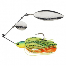 Der DEX Spinnerbait ist ein Premium-Finesse-Spinnerbait, der mit den hochwertigsten Materialien hergestellt wird. Die Colorado- und Willow-Blätter sind auf einem haltbaren Titanium-Rahmen montiert. Durch den hochverdichteten Wolframkopf hat der Spinnerbait einen extrem niedrigen Schwerpunkt, der den Köder sehr stabil im Wasser liegen lässt. Der DEX Spinnerbait verfügt über einen handgebundenen, flexiblen Rock und hat einen chemisch geschärften Haken.