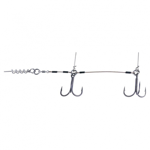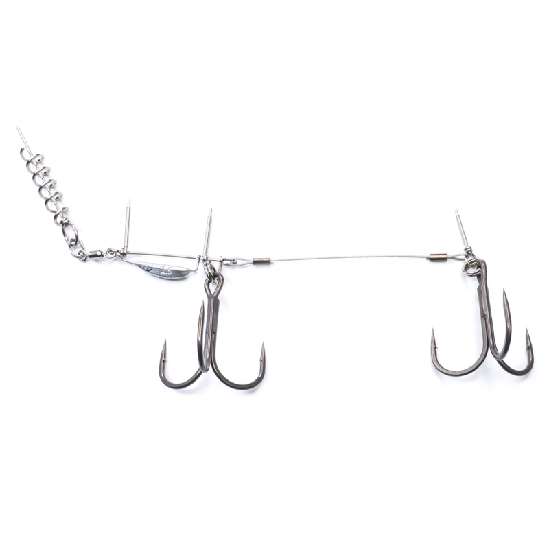 Mit bemerkenswerten Verbesserungen im Vergleich zu einem Standard-Stinger-Rig verfügt es über ein schnelles und intuitives Bleiersatzsystem zum Anpassen des Sinkmusters Ihres Köders und mit Kunststoffmaterial überzogene Stifte, damit das Rig perfekt am Köderkörper haftet.