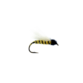 Die CDC Geting ist eine Fliege, die speziell entworfen wurde, um Wespen nachzuahmen. Durch die Verwendung von CDC-Federn hat sie hervorragende Schwimmeigenschaften und eignet sich besonders gut für die Forellenfischerei, wenn Fische auf terrestrische Insekten reagieren.
