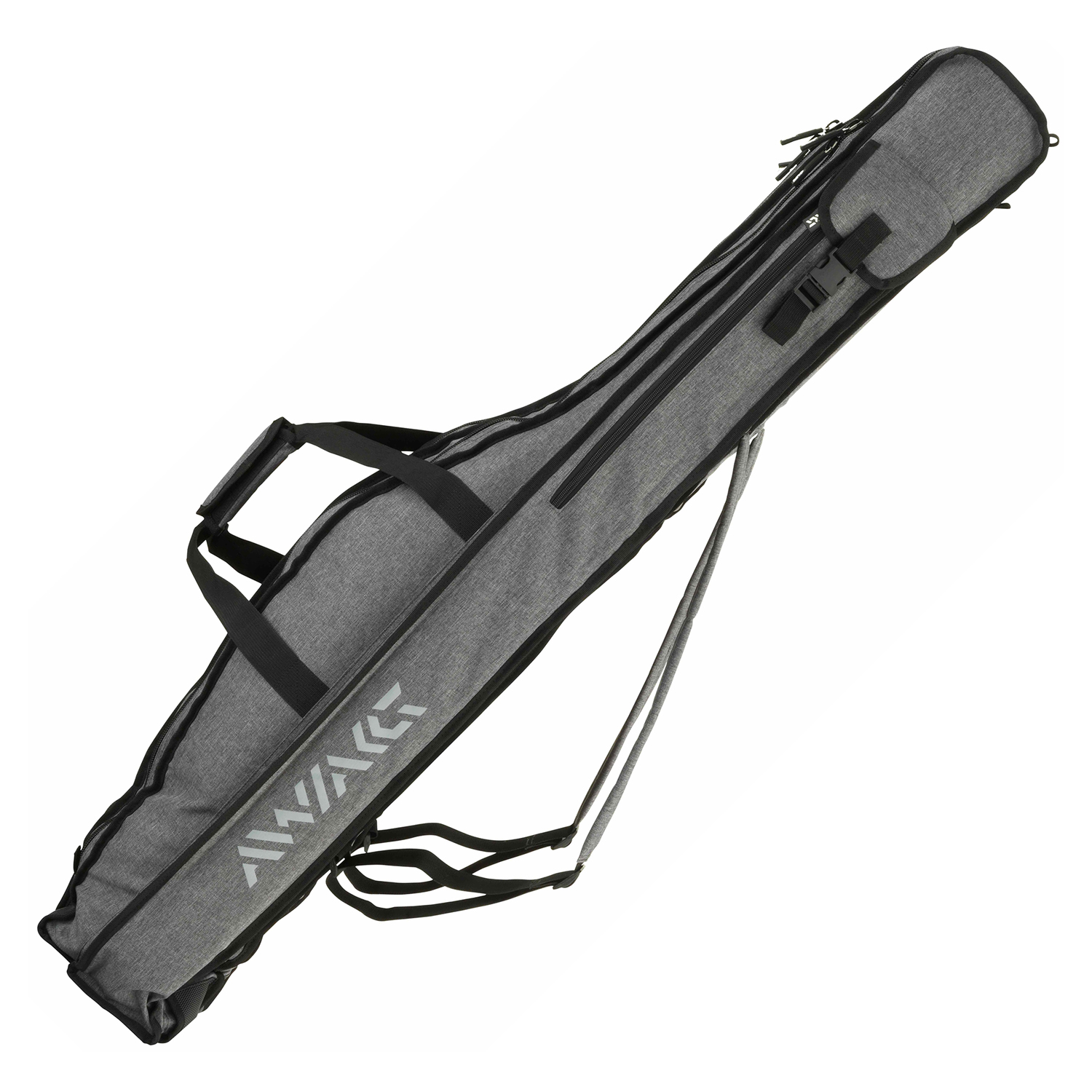 Diese dick gepolsterte Rutentasche bietet Platz für drei montierte Ruten und ist perfekt ausgestattet für den Outdoor-Einsatz. Die lange Fronttasche mit extra-großem Reißverschluss ist ideal für Schirme oder weiteres Zubehör. Gepolsterte Schultergurte im Rucksackstil und ein Tragegriff sorgen für bequemen Transport. Zwei Ösen oben und unten ermöglichen die hängende Aufbewahrung. Aus wasserabweisendem Material gefertigt, mit gummiertem Boden für Schutz auf nassem Untergrund, und extra-starken, korrosionsfreien ABS-Reißverschlüssen.