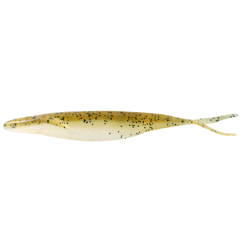 Die Flossen wirken bei Spinnstopps als Stabilisatoren, so dass der Köder vollständig horizontal fällt und nicht wie bei anderen weichen Jerkbaits mit dem Kopf voran.