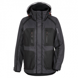 Element ist vollständig wasser- und winddicht aus elastischem Galon® mit verschweißten Nähten. Perfekt für Outdoor-Aktivitäten, wie z. B. das Tragen auf oder am Meer beim Angeln oder Bootfahren. Gefüttert mit Mesh für Luftigkeit mit Belüftung unter der Passe am Rücken. Element hat eine normale Passform mit einem hohen Neoprenkragen, und die Jacke lässt sich mit einem Zwei-Wege-Reißverschluss schließen. Die Kapuze kann in den Kragen eingerollt werden, ist in Tiefe und Weite verstellbar und hat einen durchsichtigen Schirm. Gebogene Raglanärmel mit Klettverschluss am Handgelenk und Neopren-Innenbündchen. Verstellbarer Saum. Die Armausschnitte sind mit Cordura verstärkt. Die Jacke hat zwei Brusttaschen und Seitentaschen mit wasserabweisenden Reißverschlüssen und zwei Innentaschen. Die Jacke ist mit Reflektoren ausgestattet.