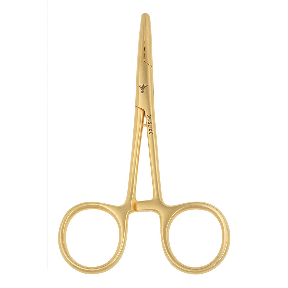 Die Dr. Slick El Dorado Standard Clamp in der Limited Edition vereint Präzision und Luxus. Diese 5 Zoll lange, gerade Klemme ist doppelt mit 24 Karat Gold plattiert, sorgfältig handpoliert und gewachst für ein makelloses Finish. Mit einer schmalen Spitze und einem angenehmen Griffdesign eignet sie sich ideal für präzises Arbeiten. Die Klemme ist arretierbar und verfügt über eine integrierte Nadel am Griff, um Lackreste aus den Ösen der Fliegen zu entfernen. Geliefert wird sie in einem eleganten, limitierten El Dorado Etui.