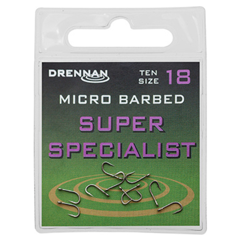 Seit über 20 Jahren zählen die Super Specialist Micro Barbed Haken zu den meistverkauften Haken für kapitale Fische im Vereinigten Königreich. Diese Haken aus extra starkem Carbonstahl sind äußerst robust und die erste Wahl für Angler, die auf die Landung großer Fänge wie Schleie, Brasse, Döbel und Barbe spezialisiert sind.
