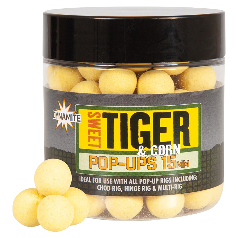 Dynamite Baits Big Fish Sweet Tiger & Corn Pop-ups 15mm - Ein passender Pop-up für den Big Fish Sweet Tiger and Corn Boilie. Mit Mais für einen natürlichen, fischigen Geschmack. 15 mm groß. Gleicher cremiger, süßer Geschmack wie der Boilie. In wiederverschließbaren Bechern, um die Frische zu bewahren.