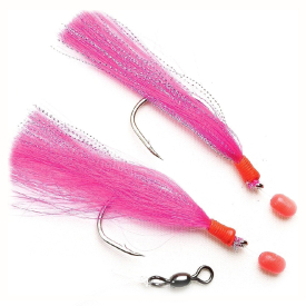 Fladen Big Water Flashing 2 Haken 8/0, Rot. Feder- und Flash-Rig mit leuchtender Perle für Kabeljau, Pollock und verschiedene andere Arten.