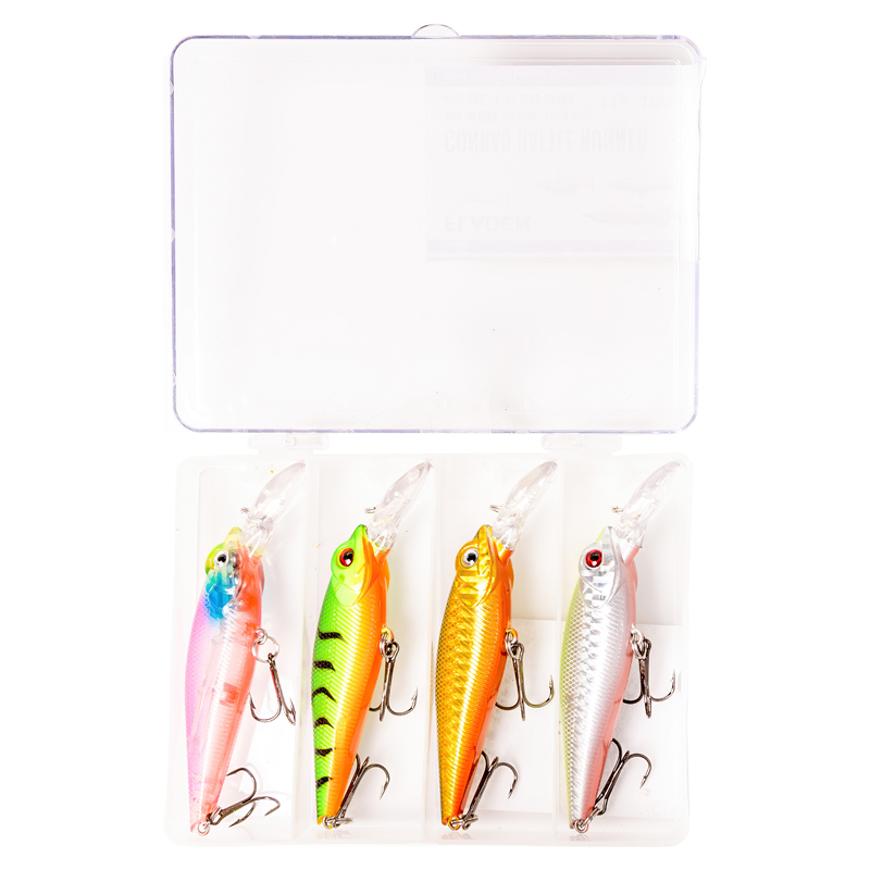 Fladen Conrad Rattle Runner Slow Sinking (4er-Pack) - 10cm 11g ist ein sinkender Wobbler im 4er-Pack in der mitgelieferten Köderbox. Schöne Wobbler zum Barschangeln und Forellenangeln!