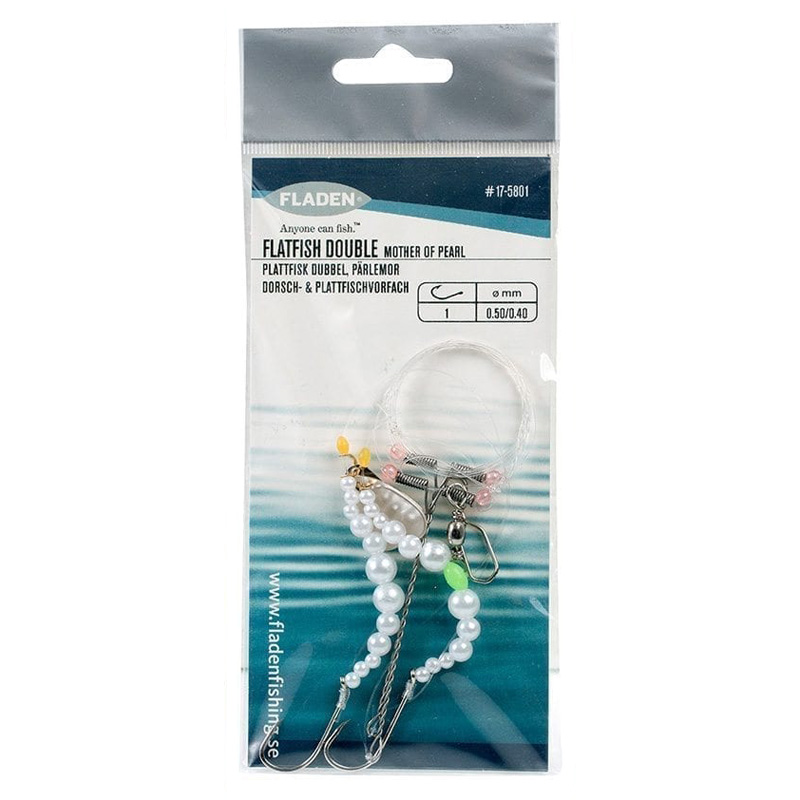 Fladen Flatfish Double Pärlemor Stl 1 Main Line 0.50mm, Leader 0.40mm ist ein Plattfischgerät mit einem vorgetakelten Rig mit Perlen.