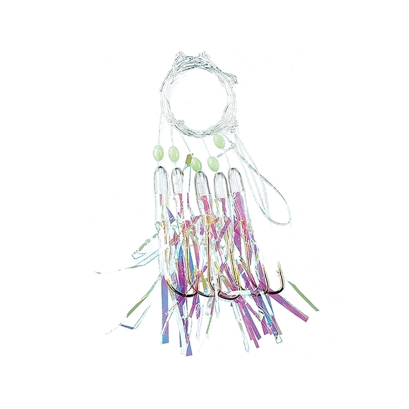 Fladen Tinsel 5 Haken Größe 3/0. Vorfach mit Gummikörper, Flash und lumineszenten Perle. Für Hering / Ostseehering / Makrele.