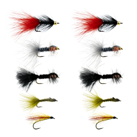 Das "Flugpaket Put and Take 2" enthält insgesamt 10 Fliegen, die speziell für das Forellen- und Regenbogenforellenangeln in Seen und Flüssen entwickelt wurden. Mit fünf verschiedenen Mustern deckt dieses Paket die meisten Situationen beim Fliegenfischen mit Streamern ab.