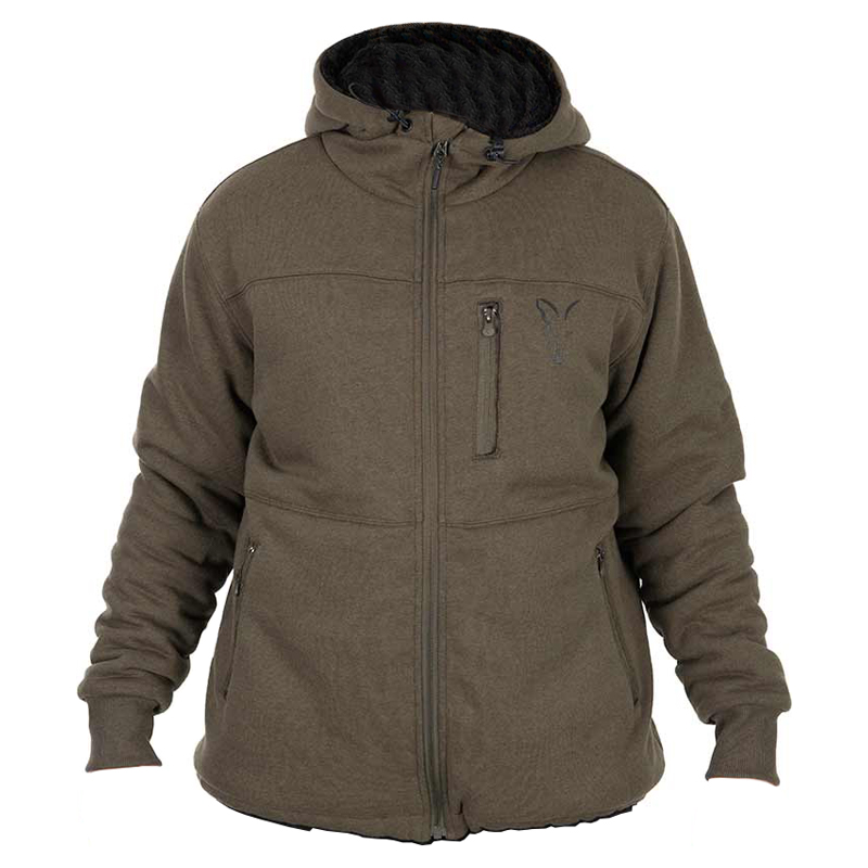 Fox Collection Sherpa Jacket Green & Black - Grüne Sherpa-Fleece gefütterte Jacke mit Kapuze. Strapazierfähiges Sherpa-Fleece-Futter für ultimative Wärme.