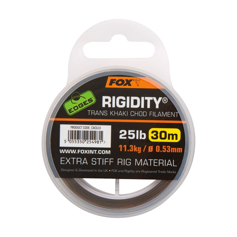 Chod Filament erhältlich in trans khaki 25lb/0.53mm & 30lb/0.57mm, extra steifes Rig Material auf 30m Spulen