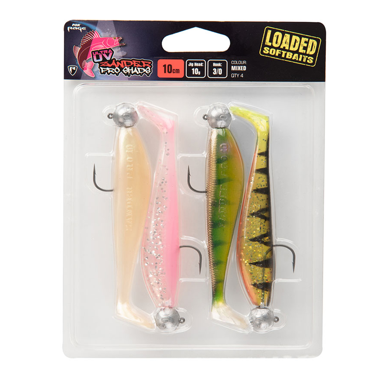 • Erhältlich in vier der beliebtesten Köder von Fox Rage in einer gemischten Auswahl an fantastischen Ultra-UV-Farben; Slick Shad, Spikey Shad, Zander Pro Shad und Mini Fry