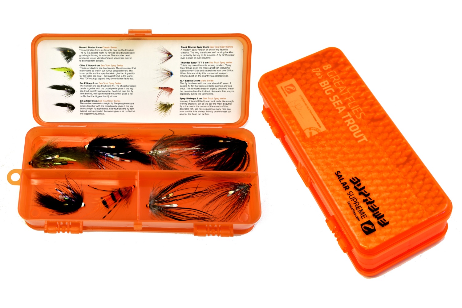 Die Frödin 8 Great Flies for Big Sea Trout ist eine sorgfältig zusammengestellte Mischung aus Fliegen für den Einsatz am Tag, Abend und in der Nacht. Jede dieser Fliegen hat bereits Meerforellen über 10 kg gefangen! Ein ideales Set für Angler, die auf der Jagd nach den ganz Großen sind.