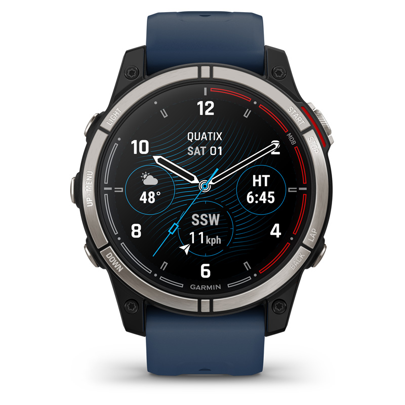 Finden Sie Ihre Lieblingsplätze auf dem Wasser und darüber hinaus mit unserer quatix® 7 Smartwatch. Sie verfügt über GPS und alle Funktionen, die Sie auf dem Boot brauchen, und alle Funktionen, die Sie sich an Land wünschen. Diese Smartwatch verfügt über umfassende Konnektivität mit kompatiblen Garmin-Plottern und anderen Geräten, sodass Sie Autopilot-Steuerung, Datenstreaming, Steuerung von Fusion-Link™-Unterhaltungssystemen, integrierte Gezeitendaten auf dem Zifferblatt, neue Alarme für ein besseres Situationsbewusstsein und mehr erhalten. Verwenden Sie die vertrauten Tasten oder die neue Touchscreen-Benutzeroberfläche, um auf verschiedene Optionen zuzugreifen. Diese Smartwatch unterstützt optionale BlueChart® g3-Karten. Diese Multisport-Smartwatch verfügt über fortschrittliche Smartwatch-Funktionen, die Ihnen den Alltag erleichtern, darunter integrierte Aktivitätsprofile für Wasser- und Landsportarten, Leistungsdaten, intelligente Benachrichtigungen, 24-Stunden-Gesundheitsüberwachung, Zugriff auf die Garmin Connect™-App und kontaktlose Zahlungen mit Garmin Pay™.