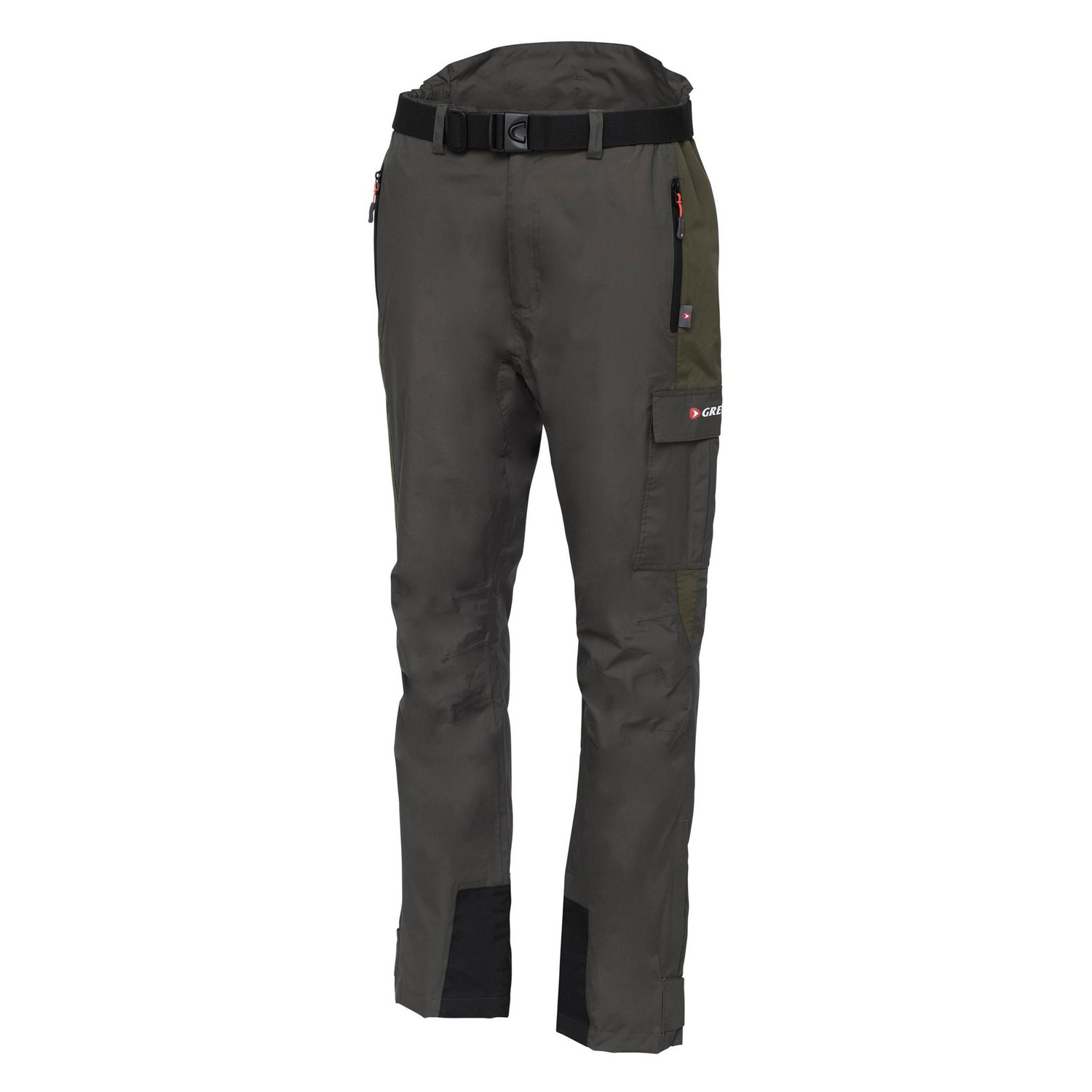 Zwei vertikale Taschen mit wasserabweisenden Reißverschlüssen sowie eine große Oberschenkeltasche mit Klappe bieten praktischen Stauraum. Verstärkungen an beanspruchten Stellen erhöhen die Langlebigkeit, während ein verstellbarer, elastischer Gürtel für eine optimale Passform sorgt. Die Beinabschlüsse sind mit Klettverschlüssen individuell einstellbar.