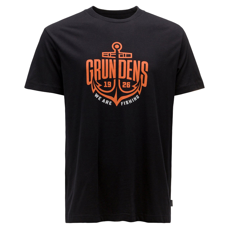Grundéns Logo Anchor SS T-Shirt Black - Leistungsstarker UPF 50 Sonnenschutz in der Bequemlichkeit und Vielseitigkeit eines alltagstauglichen T-Shirts mit witzigen Grundéns-Grafiken. Gebürstetes Polyester ist feuchtigkeitsregulierend, schnelltrocknend und weich, verstärkt durch ein Anti-Odor-Finish - Grundéns-built from the ground up.