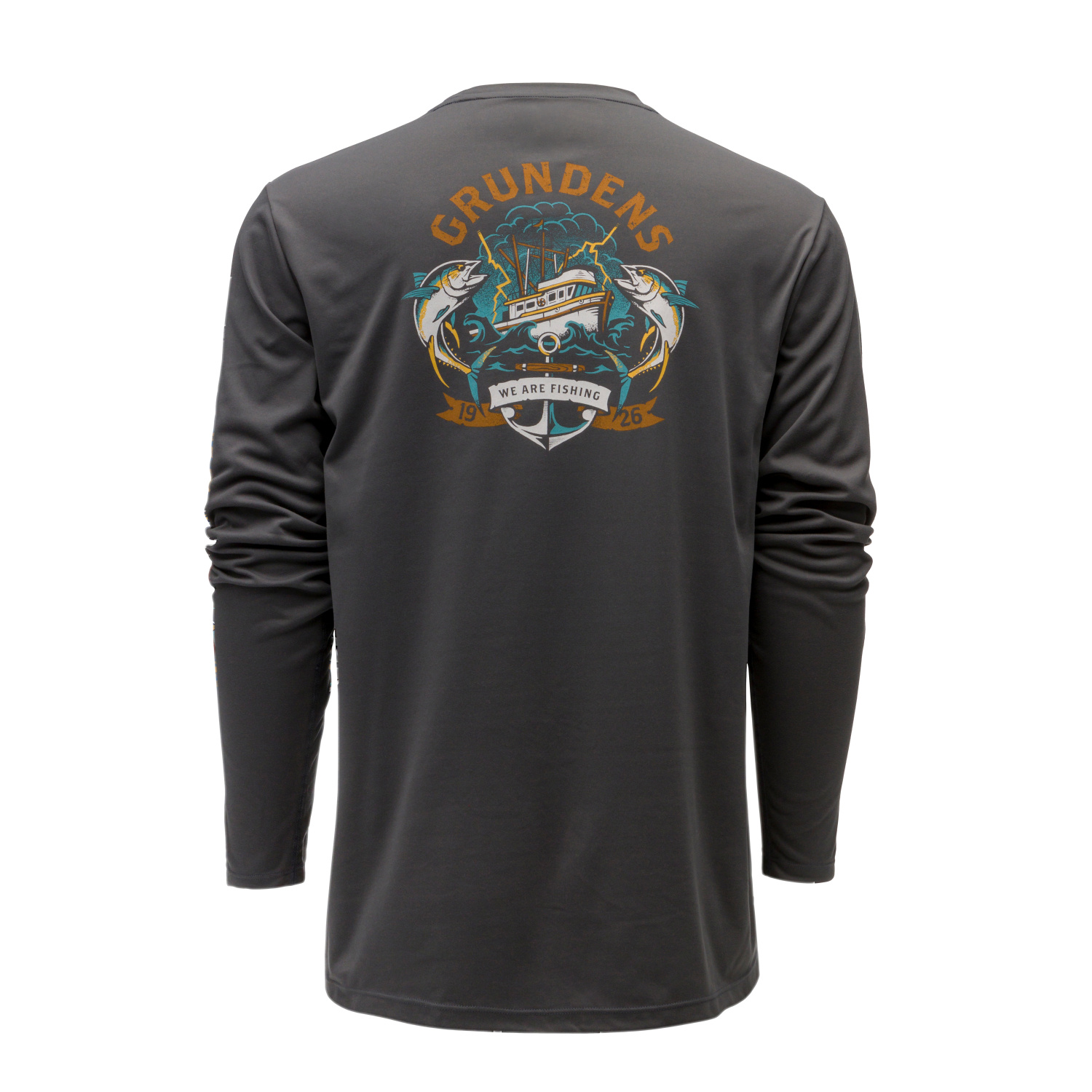 Grundéns Tuna Tattoo LS Tech Tee Anchor - Leistungsstarker UPF 50 Sonnenschutz in der Bequemlichkeit und Vielseitigkeit eines alltagstauglichen T-Shirts mit witzigen Grundéns-Grafiken. Gebürstetes Polyester ist feuchtigkeitsregulierend, schnelltrocknend und weich, verstärkt durch ein Anti-Odor-Finish - Grundéns-built from the ground up.