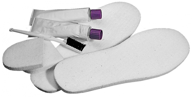 Der Filz saugt viel Klebstoff auf, daher sollten Sie zweimal Klebstoff auftragen, damit die Sohlen gut mit dem Stiefel verbunden werden. Die Stiefelseite braucht nur eine Schicht Kleber. Verwenden Sie das Schleifpapier, um alten Filz und Kleber zu entfernen, bevor Sie die neuen Sohlen auftragen. Verwenden Sie das lose Absatzstück bei Stiefeln mit einem aufgebauten Absatz.