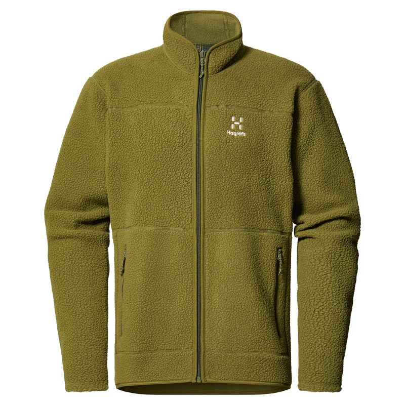 Haglöfs Mossa Pile Jacket Men Olive Green - Hier vereinen sich Komfort, Stil und Bereitschaft für die freie Natur. Diese Jacke besteht aus einem isolierenden, recycelten Polyesterflor-Material, das atmungsaktiv ist und schnell trocknet - Eigenschaften, die sie für eine Vielzahl von Aktivitäten geeignet machen.