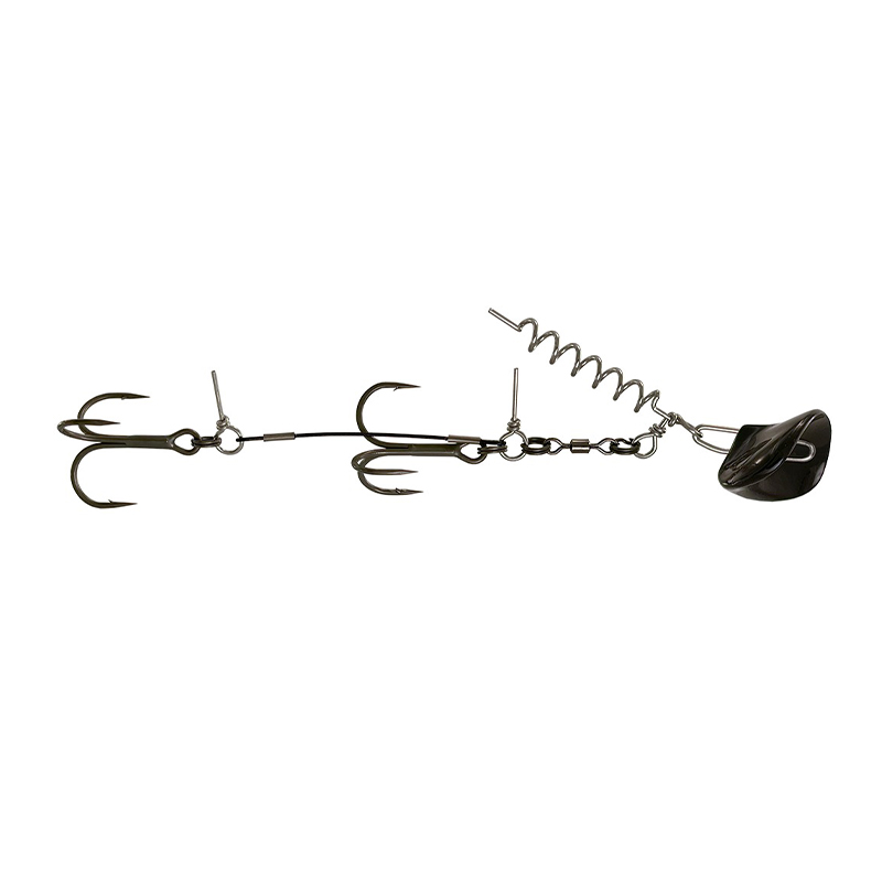 Für etwas tiefere Bereiche ist die vormontierte Zink-RockerHead genau richtig. Soll das Rig flacher oder mit anderem Gewicht gefischt werden, lässt sich der RockerHead einfach abnehmen und durch normale Gewichte am Snap ersetzen, der anschließend wieder an die Schraube gesetzt wird. Scharfe BKK 6062-1X-NP SS Haken in den Größen #1/0 und #1 (kleines Rig) sowie #2/0 (großes Rig) sorgen für sicheren Halt im Fischmaul.