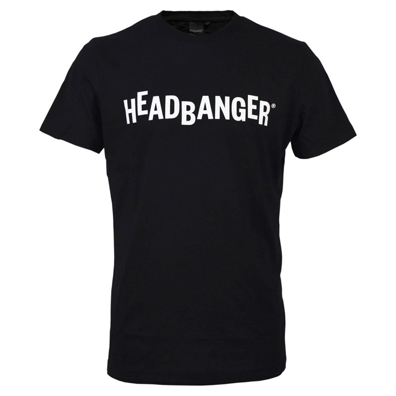 Sehr bequemes schwarzes T-Shirt mit weißem Headbanger-Logo auf der Brust und im Nacken. Klassisches und stylisches T-Shirt, das sowohl als Angeloutfit als auch als Streetwear hervorragend funktioniert.