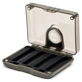 Die Hook Safe wurde mit einem geschlitzten Silikoneinsatz entwickelt, der jeden Haken sicher an seinem Platz hält, ohne die Spitze zu beschädigen. Das robuste Gehäuse aus schlagfestem Kunststoff wird mit einem Magnetverschluss gesichert, sodass die Box während des Transports nicht versehentlich aufgeht. Der Deckel verfügt über eine integrierte, hochklappbare Lupe, mit der Sie die Hakenspitzen genau überprüfen können. Perfekt auch für Angler, die Rigs mit separatem Haar verwenden, wie z. B. Spinner-Rigs, da die Haken ordentlich vorgebunden und aufbewahrt werden können.