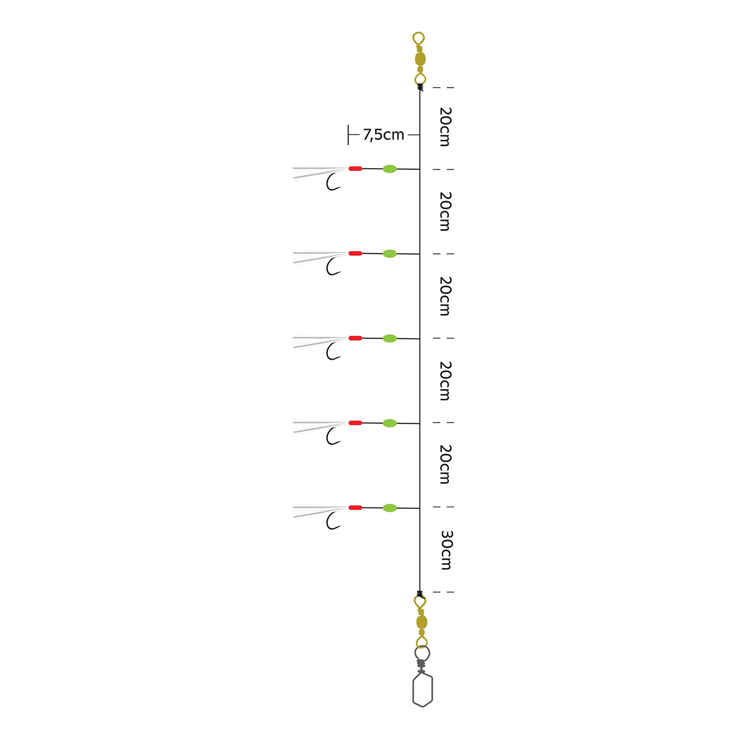 Dieses kurze und robuste Rig ist für das Bootsangeln und das Werfen vom Ufer aus gemacht. Fischen Sie wie ein “König” mit dem Sabiki Nordic Makrelen-Rig.