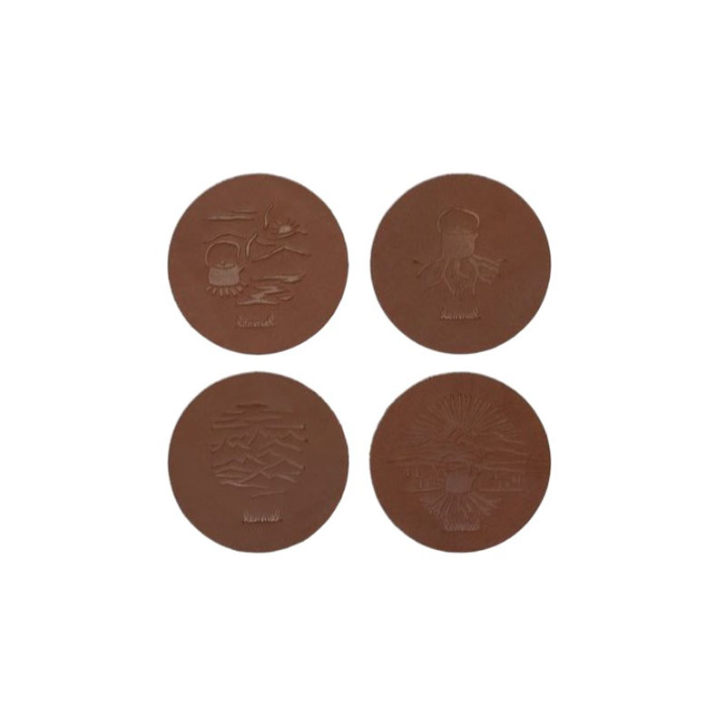 Lemmel Läder Coasters 4-pack Kustfararen sind stilvolle Untersetzer aus Leder, ideal für Kåsa-Tassen oder andere Getränke.