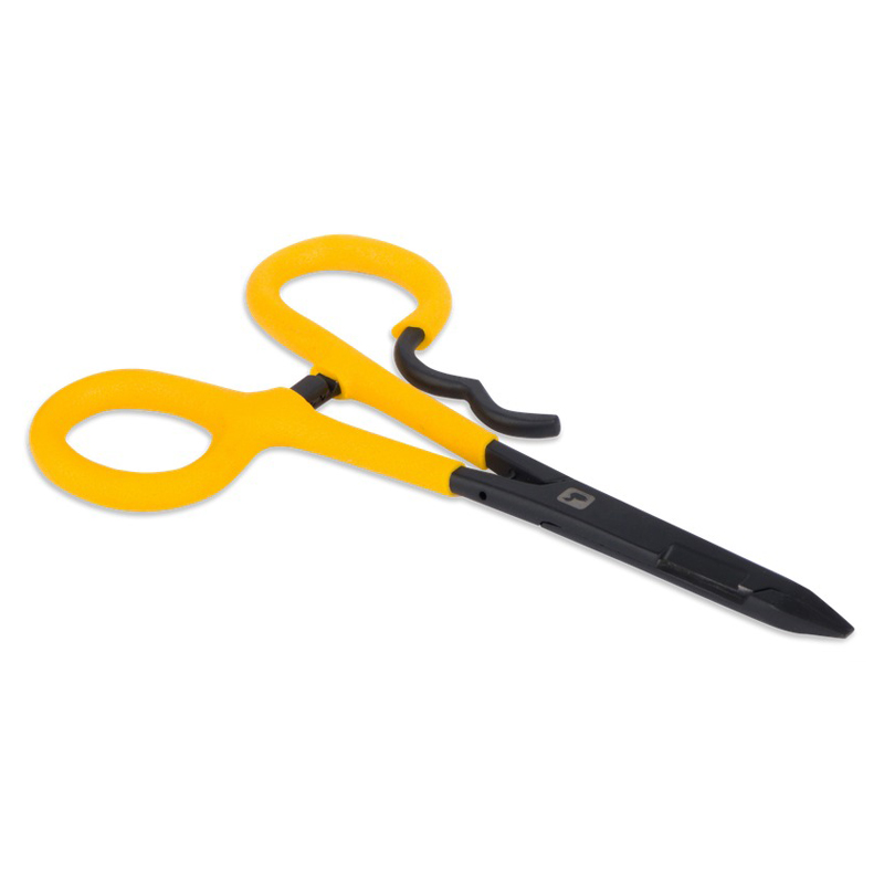Loon Hitch Pin Scissor Forceps - Manchmal ist es eine bessere Lösung, ein Paar Hämostaten in eine Tasche, eine Gürtelschlaufe oder den Bund einer Boardshorts zu stecken, als sie an eine Weste oder Wathose zu klammern. Dank der Hitch Pin-Griffe können diese Gefäßklemmen überall sicher aufbewahrt werden und bieten eine ergonomische Ablage für die Finger während des Gebrauchs.
