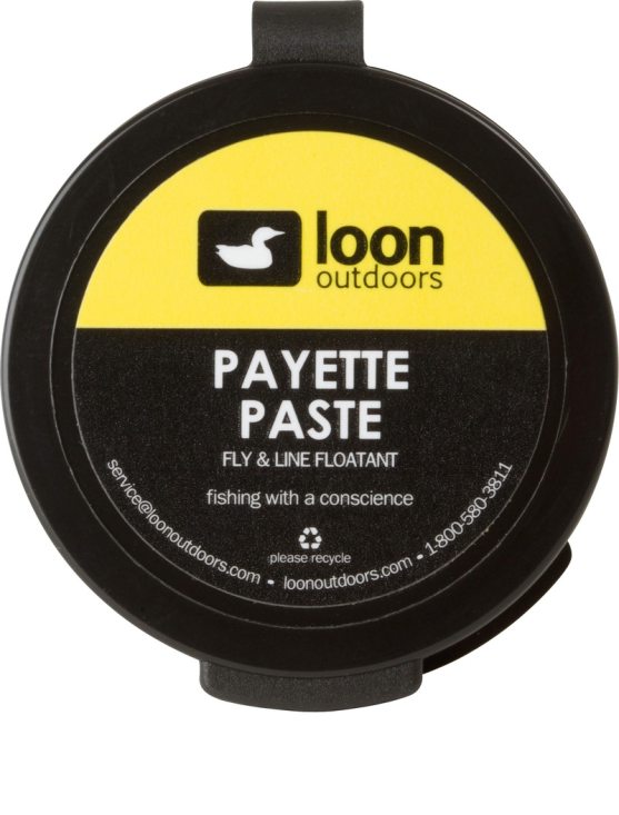 Die Paste reibt sich klar an und lässt Vorfach und Pelerine oben schwimmen. Sie kann auch als vorübergehende Behandlung für beschädigte Schwimmschnüre verwendet werden. Als Fliegenfließmittel kann Payette Paste auf große Fliegen aufgetragen werden und verleiht Flügeln und Körpern eine glatte, seidige Beschichtung. Sie behält ihre Textur unabhängig von der Temperatur.