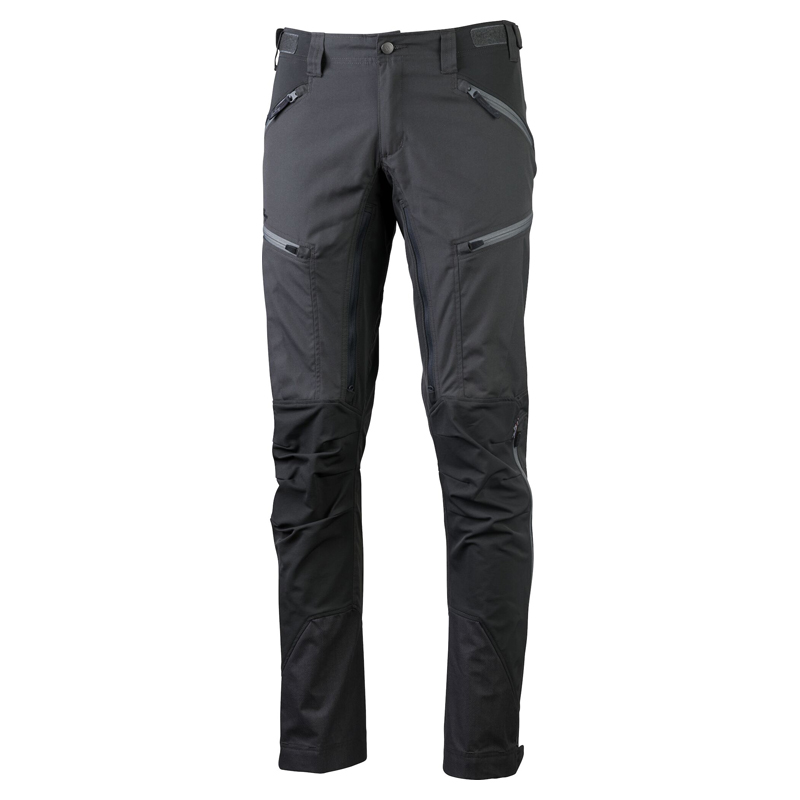 Das Obermaterial der Makke besteht aus einem Lundhags Polyester-Baumwollgemisch, das aus biologischer Baumwolle und recyceltem Polyester mit mechanischem Stretchanteil besteht. Die Softshell-Stretcheinsätze aus Schoeller Dryskin schützen vor Rissen durch Zweige und vor Abrieb durch Steine, während sie maximale Bewegungsfreiheit und ein schnelles Ableiten der Feuchtigkeit von der Haut garantieren. Verstärkungen aus Schoeller Keprotec am Einstieg sind äußerst strapazierfähig. Belüftungsreißverschlüsse auf der Innenseite des Einstiegs, bei den Eingrifftaschen und entlang der Beinaußenseite erhöhen die Luftzirkulation bei schweißtreibenden Aktivitäten. Die Makke Pant gibt es in Short, Regular und Long.