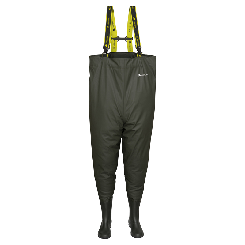 Mikado Chest Waders - Brustwathose aus hochwertigem Polyestergewebe. Die moderne Technologie der verschweißten Nähte garantiert, dass sie vollkommen wasserdicht sind und eine hohe Widerstandsfähigkeit gegen Beschädigungen aufweisen.