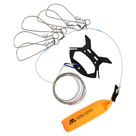 Mikado Snaps Set - Effektive und praktische Schnapper, um lebende Fische im Wasser zu halten. Das Set ist mit einer Schnur ausgestattet, die mit einem Schwimmer versehen ist, der das Rig vor versehentlichem Verlust schützt. Besonders nützlich beim Bootsangeln.