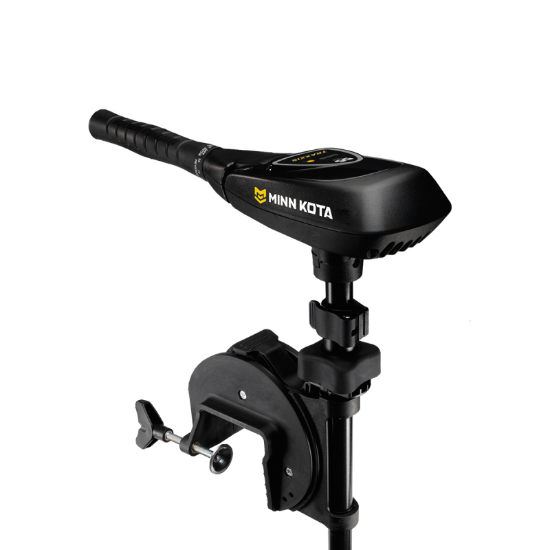 • Einhand-Verstaubarkeit: Einfach nach oben und vorne ziehen, um den Motor zu verstauen, ohne Knöpfe oder Auslösehebel. Wenn es dann Zeit ist, loszulegen, benutzen Sie den leicht zugänglichen Daumenauslöser, um den Traxxis in eine von zehn verschiedenen Positionen zu bringen.