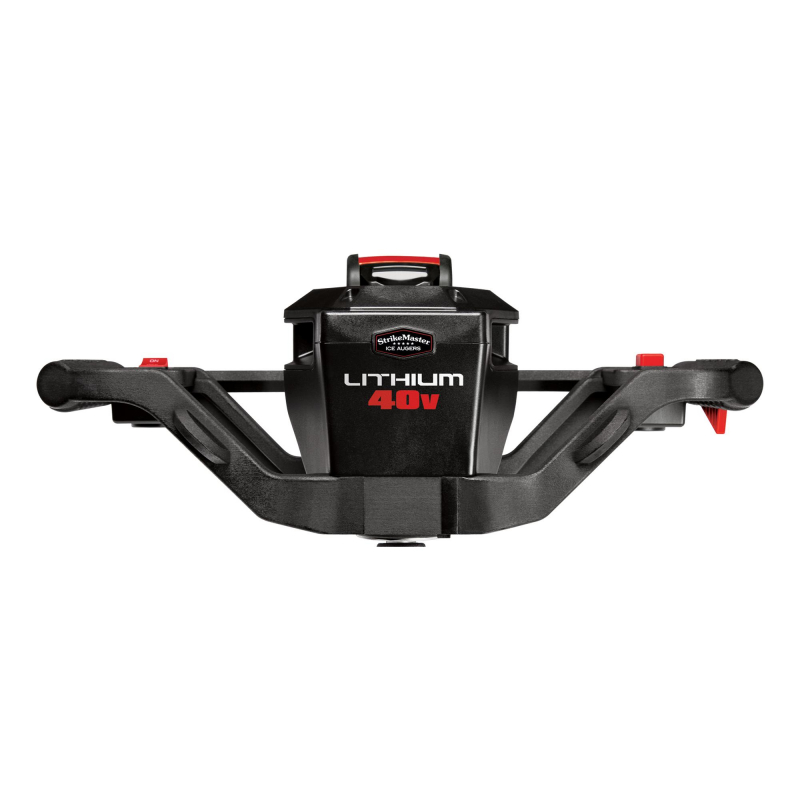 Strikemaster Lithium 40v Ice Auger, bohrt 100 Löcher mit einem 200m Bohrer in einer Ladung, basierend auf mehreren Tests auf 40cm Eis. Sehr benutzerfreundlich, um das Bohren zu starten, drücken Sie einfach einen Knopf; verfügt sowohl über Vorwärts- und Rückwärts-Modus, maßgeschneiderte stoßabsorbierende Griffe und ergonomische Bedienelemente mit Totmann-Sicherheitsschalter und LED-Leuchten.