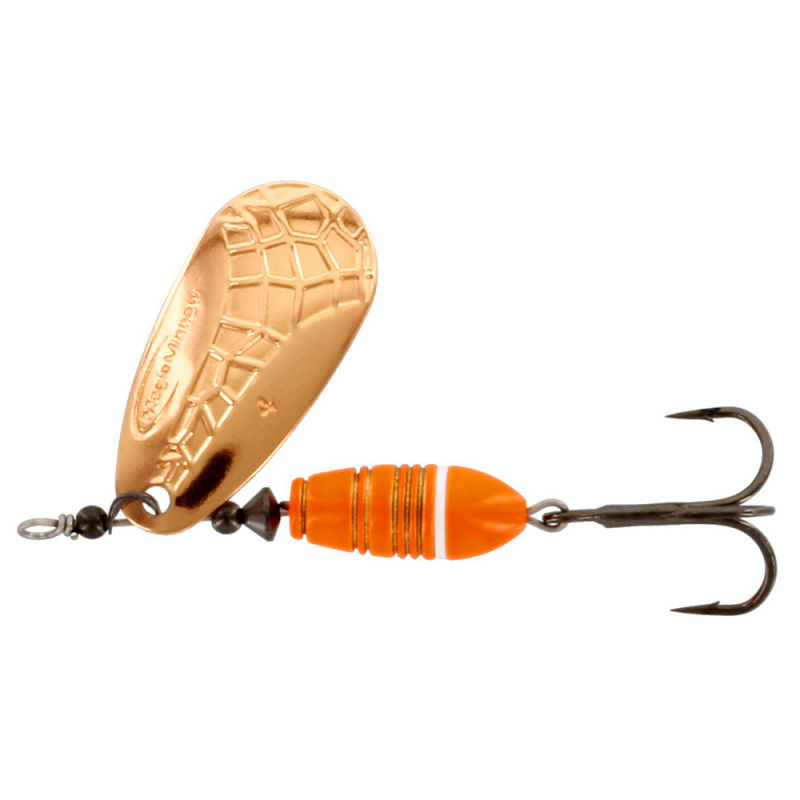 Das schön gestaltete Messingblatt reflektiert das Licht aus verschiedenen Winkeln. Es dreht sich bei der geringsten Berührung des Rollengriffs und löst jene Bewegungsimpulse aus, denen keine Forelle, kein Lachs und kein anderer Räuber widerstehen kann. Dies ist einfach der am besten aussehende und attraktivste Spinner auf dem Markt und die starken Haken im japanischen Stil werden selbst den härtesten Kampffischen standhalten.