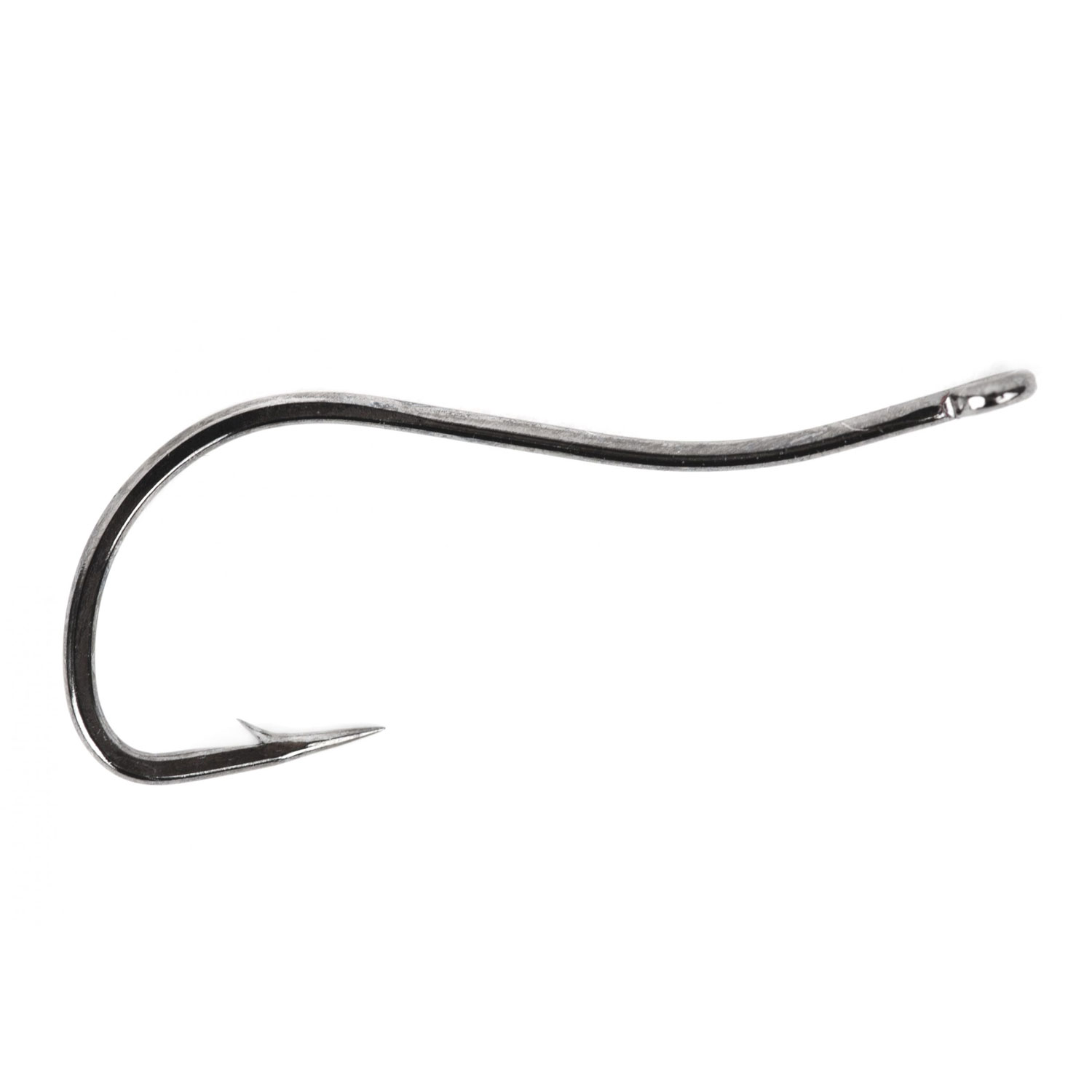 The swimming shrimp hook with its special curved appearance is the perfect hook model for tying modern shrimp imitations. The profile of the hook imitates the curved body of a shrimp in a very realistic way.