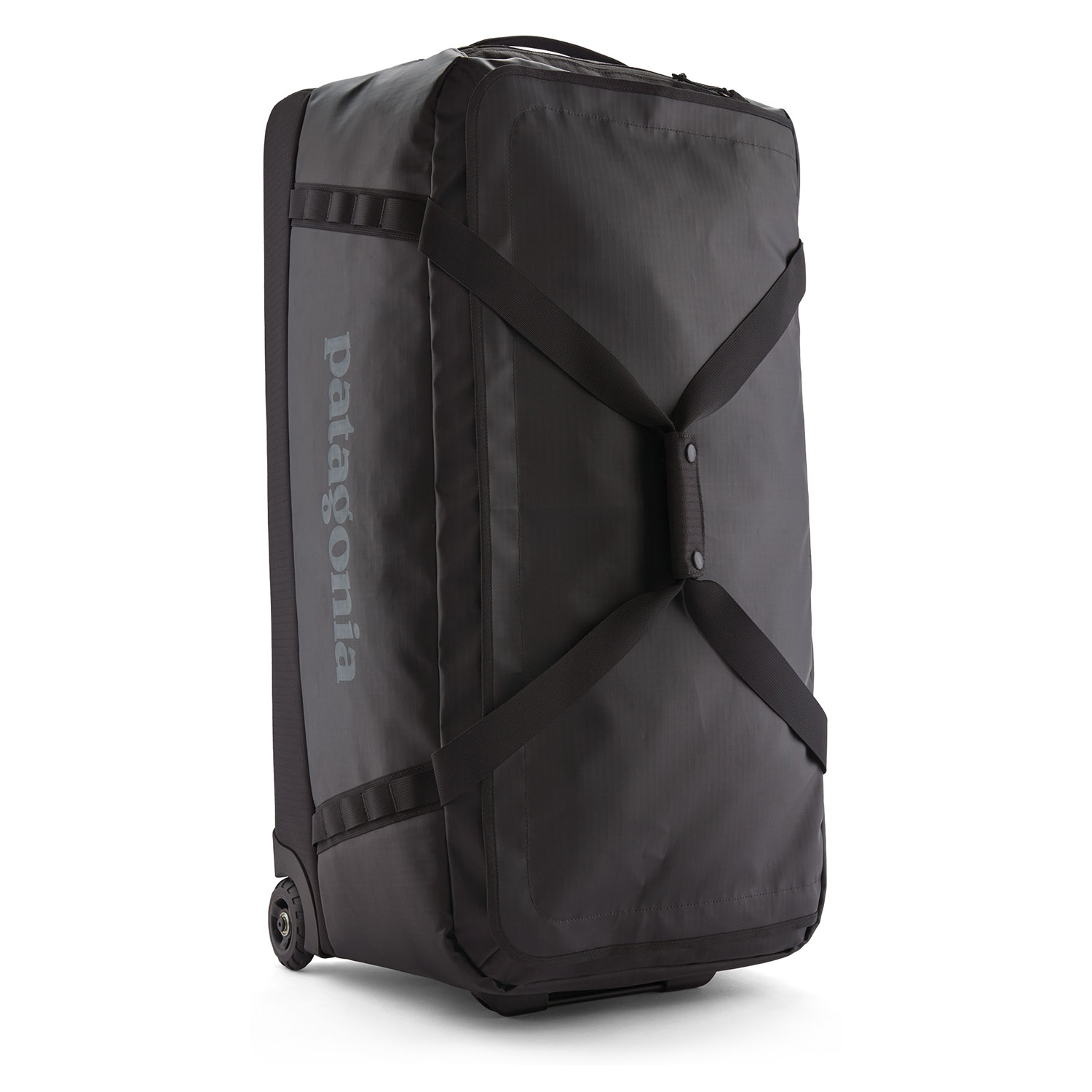 Hochwetterbeständiger 100-Liter-Gepäcktransporter mit stabilen Rädern und Teleskopgriff. Hergestellt aus 100% recyceltem Material in Fair-Trade-zertifizierter Fabrik.