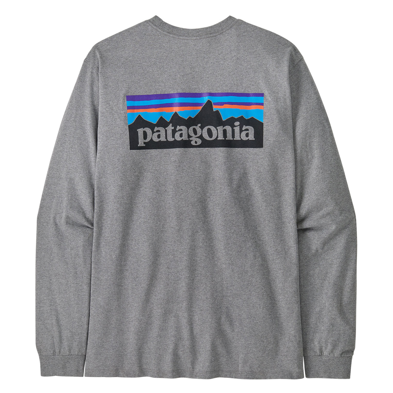 Patagonia M's LS P-6 Logo Responsibili-Tee, bei der Herstellung dieses 100% recycelten Langarm-T-Shirts wird 96% weniger Wasser verbraucht und 45% weniger CO2 erzeugt als bei einem herkömmlichen Baumwoll-T-Shirt.