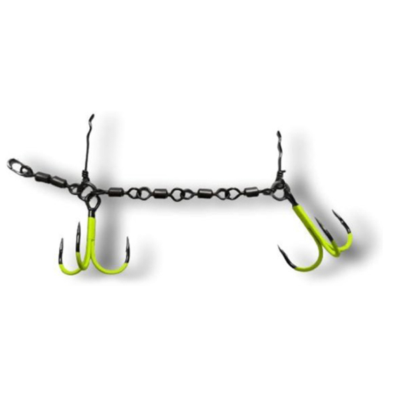 Der BKK Spear-21 SS (ehemals Fangs BT621-SS) ist ein extrem vielseitiger Drilling für das Süßwasserangeln auf verschiedene Zielfische. Mit seiner Kombination aus dünner Stärke (1X), scharfem Hook Point und Super Slide Beschichtung ermöglicht er ein einfaches Eindringen und optimales Hook Setting. Robuster Kohlenstoffstahl (BKK 81-WV) sichert die Langlebigkeit selbst nach vielen Bissen. Durch die moderate Hakenschenkellänge eignet er sich perfekt für Hardbaits, Rigs und Stinger Montagen. Dieser Stinger Rig mit BKK 3/0 Spear21-UVC Haken ist ideal für ambitionierte Hobby- und Turnierangler.
