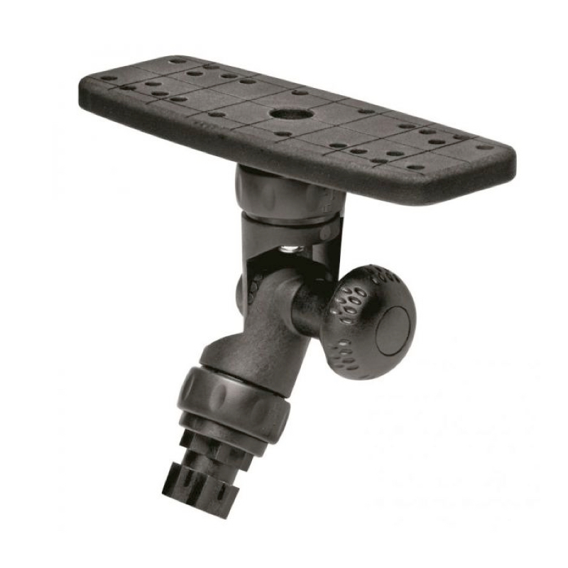 This 3 axis mount has friction joints top and bottom featuring R-Lock lockable joints (pat pending). The centre joint is fully adjustable in 15-degree increments. Will take fish finders up to 1.5kgs (3.3 lb). Mount on an angled surfaces and have your display level!
