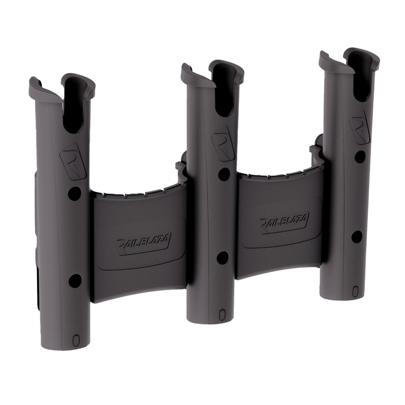 The RodStow Triple is available in black or white, comes with stainless steel fasteners and can be installed in minutes. It features a storage caddy for lures, traces and other tackle, it’s even big enough to hold a small tackle box. These rod holders have a removable gimbal pin that you can leave in to support the rod and stop rotation, or remove to let the rod pass through.