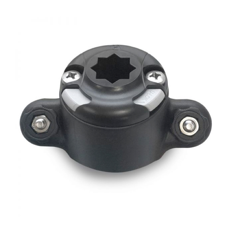 This mounting base allows tool-free installation of accessories on aluminium fishing boats with 45 degree gunnel tracks, including Lund, Lowe, Excel, Express and early model Crestliner boats.