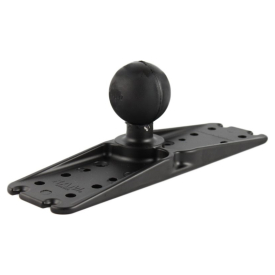 "Die universelle Montageplatte RAM-D-111BU besteht aus einer Gummikugel mit einem Durchmesser von 2,25"", die rechtwinklig mit einer flachen rechteckigen Platte von 11 x 3"" verbunden ist."