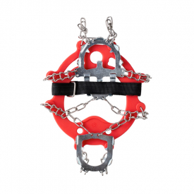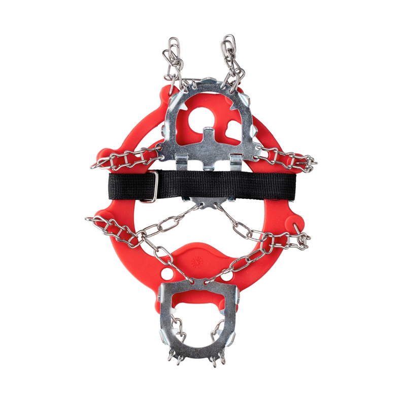 Die Kette und die Stacheln sind aus rostfreiem Stahl gefertigt. Strapazierfähiges Gummi. Klettverschluss oberhalb des Fußes für optimalen Sitz am Schuh. Leichtes An- und Ausziehen. Inklusive Aufbewahrungstasche.