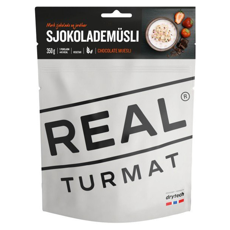 Real Turmat Schokoladenmüsli Schokoladenmüsli von Real Turmat ist mit Honig und Erdbeeren gesüßt. Hält den Hunger in Schach, wenn er sich anschleicht!