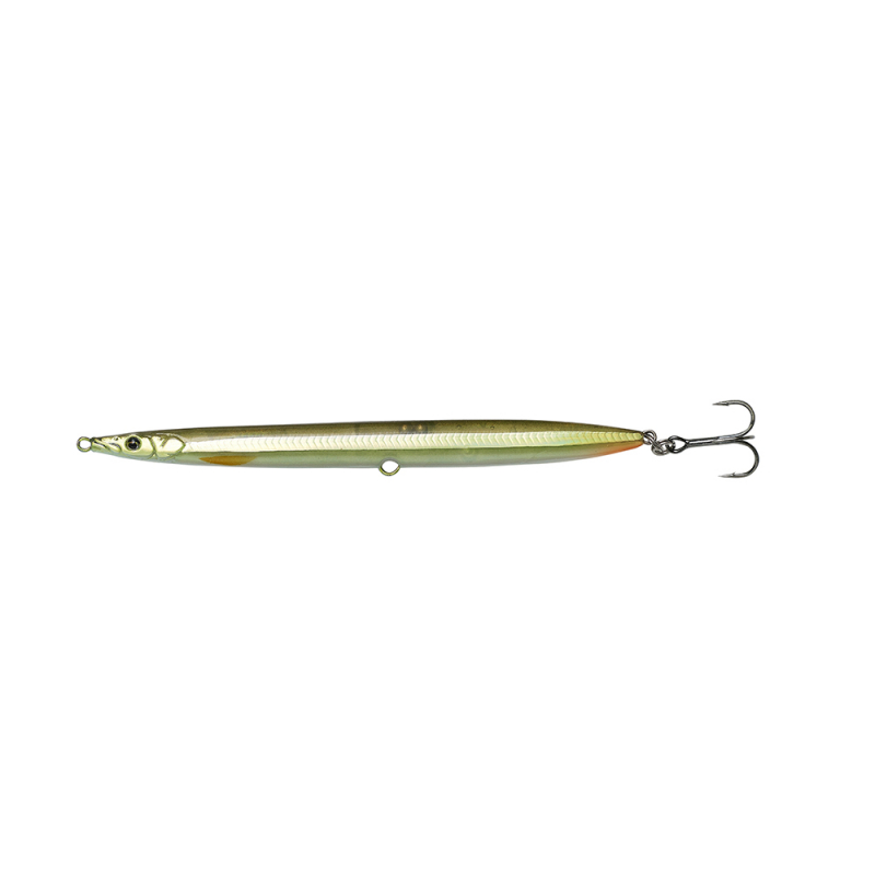 Basierend auf einem 3D-Scan eines echten Sandaals. Schwimmt mit einer verführerischen schlanken S-Kurve, Kopf leicht nach oben. Beim Anschlag flattert und rollt der Köder rückwärts – er löst harte Schläge aus. Der Köder hat eine eingebaute Rasselkammer, die beim Zupfen ein lautes Klickgeräusch von sich gibt. Extrem weites Wurfdesign für erstaunliche Reichweite. Wird sowohl mit einem einfachen als auch mit einem dreifachen Haken geliefert, mit der Option, den dreifachen Haken auch am Bauch anzubringen.