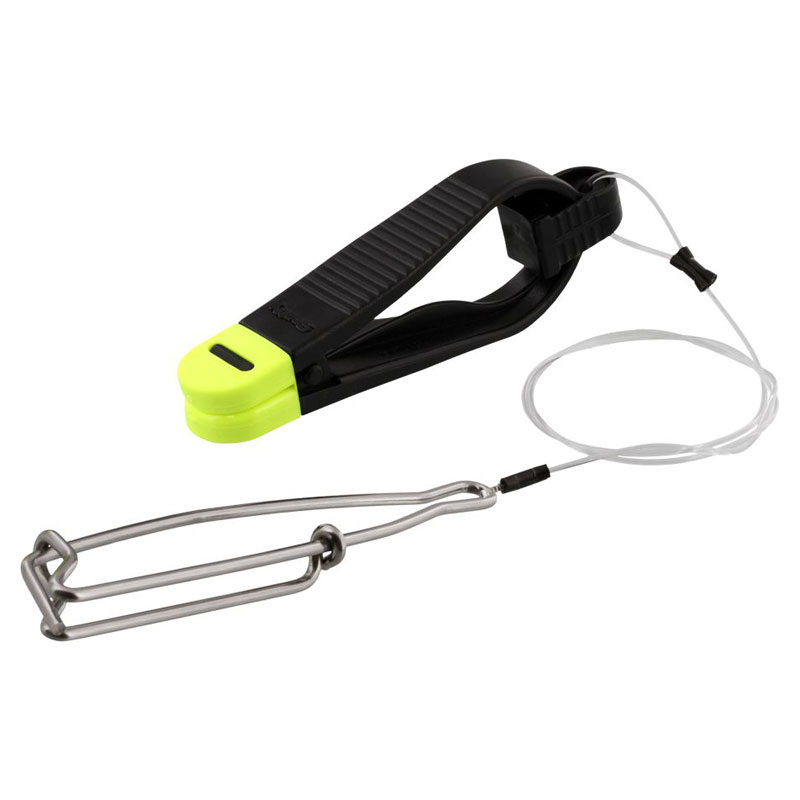 • Die Angelschnur wird zwischen den weichen Pads geklemmt und die variable Auslösespannung wird durch Bewegen der Schnur in oder aus den Backen erreicht